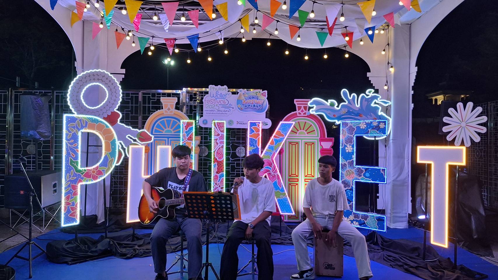 ที่ ลานบางลา หาดป่าตอง ผู้มาเยือนจะได้สัมผัสบรรยากาศสงกรานต์ริมทะเลที่มีชีวิตชีวาเป็นพิเศษ พื้นที่จัดแสดงกลางแจ้งและแลนด์มาร์กถ่ายภาพถูกออกแบบด้วยแรงบันดาลใจจากวัฒนธรรมบาบ๋า–เพอรานากัน ขณะที่ นิทรรศการงานสงกรานต์ ถ่ายทอดเรื่องราวของประเพณีปีใหม่ไทยในฐานะ “มรดกภูมิปัญญาทางวัฒนธรรมของมนุษยชาติ” เพื่อให้ทั้งคนไทยและชาวต่างชาติได้เข้าใจความหมายของสงกรานต์อย่างลึกซึ้ง บรรยากาศตลอดทั้งวันยังเต็มไปด้วยการแสดงมโนราห์และดนตรีเยาวชนจากโรงเรียนวัดเทพนิมิตรและโรงเรียนบ้านไม้ขาว รวมถึงสินค้าและงานคราฟต์จากชุมชนท้องถิ่นที่สะท้อนเอกลักษณ์ของภูเก็ตได้อย่างชัดเจน