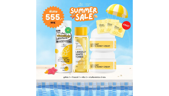 ใครไม่อยากผิวพังช่วงซัมเมอร์และหลังสงกรานต์ ฟังทางนี้! ไอบลองก์ชวนปกป้องผิวด้วยเซ็ตดูแลผิวลางสาด สกินแคร์ตัวท็อปขายดีที่ช่วยปกป้องผิวพังจากสิวขั้นสุดที่มาพร้อมกับโปรโมชันแรงสุดคุ้ม ทั้งลด ทั้งแถม ตลอดเดือนเมษายนนี้ ประกอบด้วย ไอบลองก์ ลางสาด เฟซแอนตี้-แอคเน่มูส,ไอบลองก์ ลางสาด ไวท์โทนเนอร์, ไอบลองก์ ลางสาด ไวท์ ฮันนี่ ครีมและ ไอบลองก์ ลางสาด ซันโปรเทคชั่นทั้งหมดนี้คือเซ็ตบิวตี้ไอเทมที่จะช่วยปกป้องผิวทุกคนให้รอดจากสิวผิวพังตลอดซัมเมอร์นี้จะมีโปรโมชันอะไรบ้าง ไปเลือกช้อปกันได้เลย