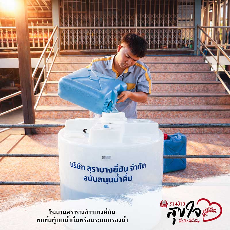 หนึ่งในพื้นที่ดำเนินงานคือ โรงงานสุรารวงข้าวบางยี่ขัน จังหวัดปทุมธานี ซึ่งได้ติดตั้งตู้กดน้ำดื่มพร้อมระบบกรองน้ำบริเวณหน้าโรงงาน และติดตั้งถังเก็บน้ำดื่ม ขนาด 200 ลิตร ณ วัดเกาะเกรียงและวัดบางคูวัดกลาง ซึ่งเป็นศูนย์กลางของชุมชน นอกจากนี้ ยังสนับสนุนน้ำประปาสะอาดผ่านเทศบาลเมืองบางคูวัด เพื่อใช้สำหรับสถานการณ์จำเป็น เช่น ภัยแล้ง น้ำท่วม หรืออัคคีภัย โดยในปีที่ผ่านมา โรงงานได้ส่งมอบน้ำดื่มรวม 516 ลูกบาศก์เมตร และสนับสนุนน้ำประปาสะอาดอีก 1,531 ลูกบาศก์เมตร