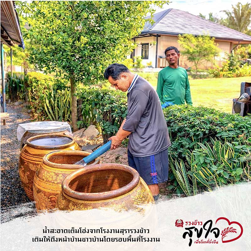 ตลอดปี 2568 โรงงานสุรารวงข้าวได้ส่งมอบน้ำสะอาดสำหรับการอุปโภคบริโภคสู่ชุมชนรอบโรงงานรวมทั้งสิ้นกว่า 4,736 ลูกบาศก์เมตร นอกจากจะช่วยยกระดับคุณภาพชีวิตของผู้คนในพื้นที่แล้ว แต่ยังช่วยลดภาระค่าใช้จ่ายของครัวเรือน และเสริมสร้างความมั่นคงด้านการเข้าถึงน้ำสะอาดในชีวิตประจำวัน โครงการนี้จึงไม่ได้เป็นเพียงการสนับสนุนทรัพยากรพื้นฐานให้กับชุมชนเท่านั้น แต่ยังสะท้อนถึงความมุ่งมั่นในการเติบโตไปพร้อมกับสังคมและชุมชนรอบโรงงาน เพื่อสร้างคุณภาพชีวิตที่ดีและความยั่งยืนให้เกิดขึ้นในระยะยาว