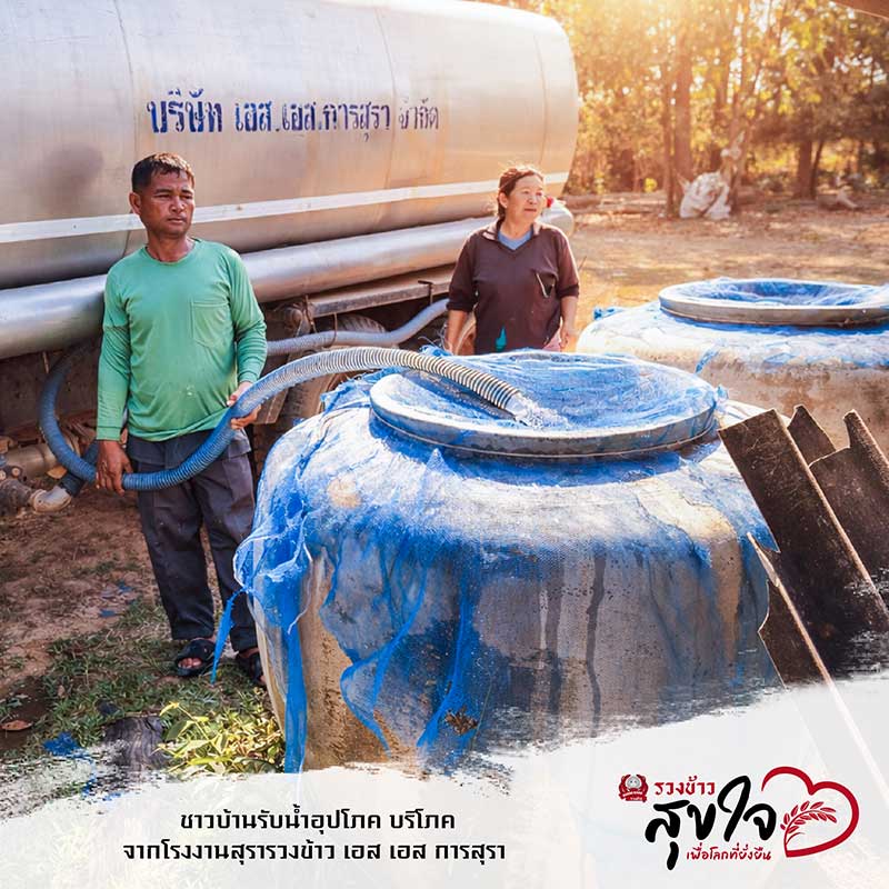 ขณะเดียวกัน โรงงานสุรารวงข้าว เอส.เอส.การสุรา จังหวัดอุบลราชธานี ได้สนับสนุนน้ำดื่มสะอาดให้แก่ชุมชนรอบโรงงานในอำเภอสว่างวีระวงศ์ สำหรับใช้ในการบริโภคในครัวเรือนและสถานที่ทำงาน โดยในปีที่ผ่านมาได้ส่งมอบน้ำดื่มรวม 947 ลูกบาศก์เมตร
