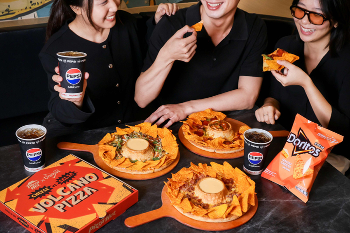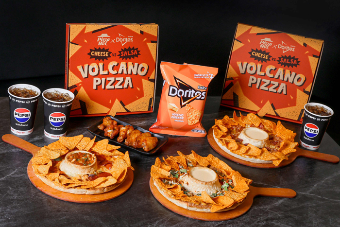 สำหรับเมนูสุดสร้างสรรค์ครั้งนี้ ได้รับการพัฒนาโดย เชฟพลอย-ณัฐณิชา บุญเลิศ MasterChef The Professionals Thailand ที่นำเทรนด์ดังในโซเชียล อย่างการนำโดริโทสไปจับคู่กับเมนูต่าง ๆ มาต่อยอด พร้อมผสานเข้ากับวัฒนธรรมการ “ดิป” ที่เป็นเอกลักษณ์ระดับโลก เพื่อรังสรรค์เป็นเมนูใหม่ “พิซซ่าภูเขาไฟขอบโดริโทส ดิปชีสลาวา” ที่มีทั้งความเข้มข้นและความนุ่มนวลของพิซซ่าสไตล์พิซซ่า ฮัท เท็กซ์เจอร์ความกรุบกรอบและรสชีส อันเป็นซิกเนเจอร์ของโดริโทส พร้อมเพิ่มกิมมิกด้วยการจัดวางถ้วยดิปไว้ตรงกลางถาด เพื่อเปิดประสบการณ์การรับประทานรูปแบบใหม่ที่ทั้งสนุก น่าตื่นเต้น และแตกต่างจากเดิม