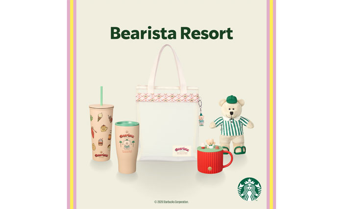 สตาร์บัคส์เชิญชวนทุกคนไปดื่มด่ำช่วงเวลาแห่งความสุขในฤดูร้อน เปิดตัวคอลเลกชันดริ๊งก์แวร์ Bearista Resort ที่จะพาคุณหลีกหนีความวุ่นวายสู่บรรยากาศรีสอร์ตริมทะเลแสนอบอุ่นและผ่อนคลาย คอลเลกชันนี้โดดเด่นด้วยลวดลายและดีไซน์น่ารักของน้องหมี Bearista ในบทบาทพนักงานรีสอร์ต พร้อมโทนสีอบอุ่นและสดใสของช่วงฤดูร้อน สร้างความรู้สึกผ่อนคลายเหมือนได้ไปพักผ่อนในรีสอร์ตคลาสสิกที่เป็นกันเอง รายล้อมด้วยต้นปาล์ม มอบความสุขและความสดชื่นให้กับทุกการจิบเครื่องดื่มของคุณ