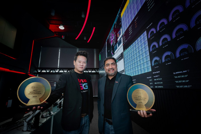 ท่ามกลางการใช้งานดิจิทัลที่กลายเป็นส่วนหนึ่งของชีวิตประจำวันของคนไทย ทรู คอร์ปอเรชั่น ตอกย้ำคุณภาพเครือข่ายที่ลูกค้าไว้วางใจ และเป็นสัญญาณที่มีความหมาย คว้าอันดับ 1 ด้านคุณภาพเครือข่ายมือถือและอินเทอร์เน็ตบ้านในเอเชียตะวันออกเฉียงใต้ภาคพื้นทวีป ประจำปี 2025 จาก nPerf สถาบันทดสอบประสิทธิภาพเครือข่ายระดับโลกจากฝรั่งเศส ซึ่งวัดผลจากประสบการณ์ใช้งานจริงของผู้ใช้งานในทุกมิติ โดยทรูมูฟ เอช อันดับ 1 เครือข่ายมือถือ 10 ปีต่อเนื่อง ด้วยคะแนนรวม 85,644 nPoints พร้อมดีแทค คะแนนมาแรงโดดเด่นประสบการณ์ใช้งานแพลตฟอร์ม ขณะที่ทรูออนไลน์ เน็ตบ้านไฟเบอร์ ครองอันดับ 1 บรอดแบนด์ 6 ปีซ้อน ด้วยคะแนน 142,668 nPoints พร้อมความเร็วดาวน์โหลดสูงสุด 332.45 Mb/s และอัปโหลดสูงสุด 270.28 Mb/s พร้อมทั้งสตรีมมิ่งสูงสุดที่ 85.60% สะท้อนศักยภาพเครือข่ายที่พัฒนาอย่างต่อเนื่อง เพื่อตอบโจทย์การใช้งานจริงของลูกค้าในทุกไลฟ์สไตล์ดิจิทัล