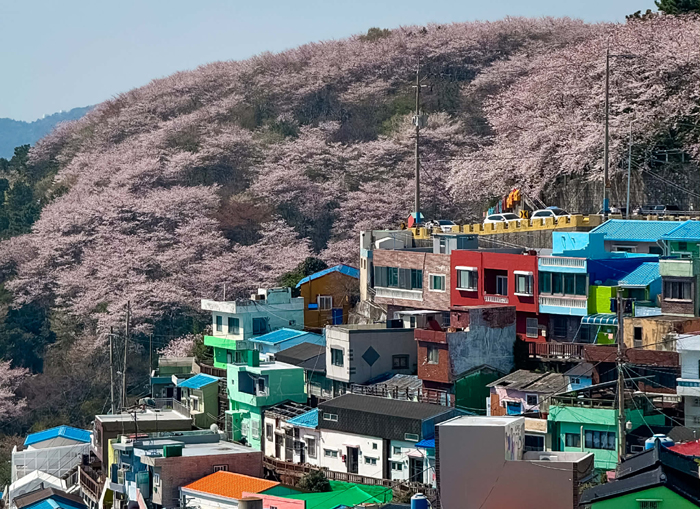 Gamcheon Culture Village (หมู่บ้านวัฒนธรรมคัมชอน) หมู่บ้านสีพาสเทลที่ตัดกับพ็อตก็อต ช่วยสร้างความรู้สึกสดใสและกระปรี้กระเปร่า เหมาะสำหรับการ “รีเซ็ตอารมณ์” อย่างรวดเร็ว