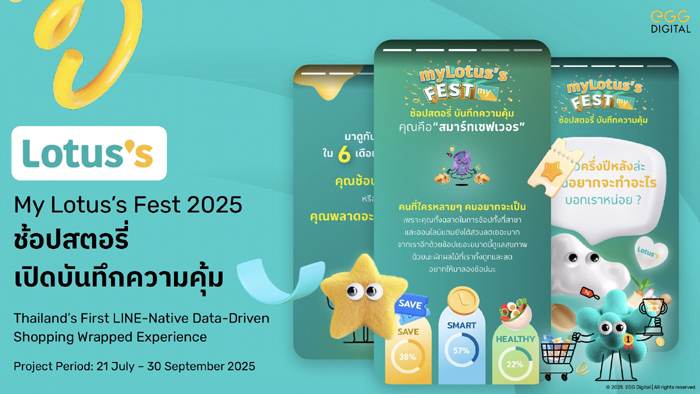 Lotus’s เลือกยกระดับการใช้ข้อมูลลูกค้าจากการสื่อสารโปรโมชันทั่วไป สู่กิจกรรม “Shopping Wrapped” บันทึกสตอรี่การช้อปสุดประทับใจของลูกค้าบน LINE OA ผ่านแคมเปญ “My Lotus’s Fest 2025 ช้อปสตอรี่ บันทึกความคุ้ม” โดยนำข้อมูลของลูกค้ามาวิเคราะห์ด้วย AI เพื่อแบ่งกลุ่มสมาชิกออกเป็น persona ที่หลากหลาย ก่อนถ่ายทอดออกมาผ่านหน้ากิจกรรมบน LINE OA สรุปสถิติพฤติกรรมการใช้จ่าย ความคุ้มค่า และหมวดสินค้าที่ชื่นชอบของตัวเองในรูปแบบที่เข้าใจง่าย น่าจดจำ