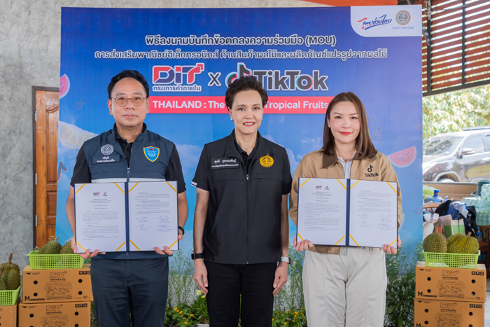 TikTok และ กรมการค้าภายใน กระทรวงพาณิชย์ (DIT) ลงนามบันทึกข้อตกลงความร่วมมือ (MoU) เพื่อร่วมกันขับเคลื่อน “สินค้าเกษตรกรไทย” ผ่าน Discovery Commerce ที่เปลี่ยน “คอนเทนต์” ให้เป็น “ดีมานด์” พร้อมยกระดับศักยภาพเกษตรกรไทยให้สามารถแข่งขันได้ในเศรษฐกิจดิจิทัล พิธีลงนามจัดขึ้นโดยมี นางศุภจี สุธรรมพันธุ์ รองนายกรัฐมนตรีและรัฐมนตรีว่าการกระทรวงพาณิชย์ ร่วมเป็นสักขีพยาน พร้อมด้วย นายวิทยากร มณีเนตร อธิบดีกรมการค้าภายใน และ นางชนิดา คล้ายพันธ์ Director of Public Policy – Southeast Asia, TikTok ร่วมลงนามในความร่วมมือครั้งนี้ โดยมุ่ง “ติดอาวุธดิจิทัล” ให้กับเกษตรกรและชุมชนท้องถิ่น เพื่อเสริมศักยภาพในการแข่งขันในยุคดิจิทัล โดยปักหมุด “ทุเรียนตะวันออก” เป็นสินค้ายุทธศาสตร์แรกเพื่อขับเคลื่อนโครงการความร่วมมือ ดังกล่าว
