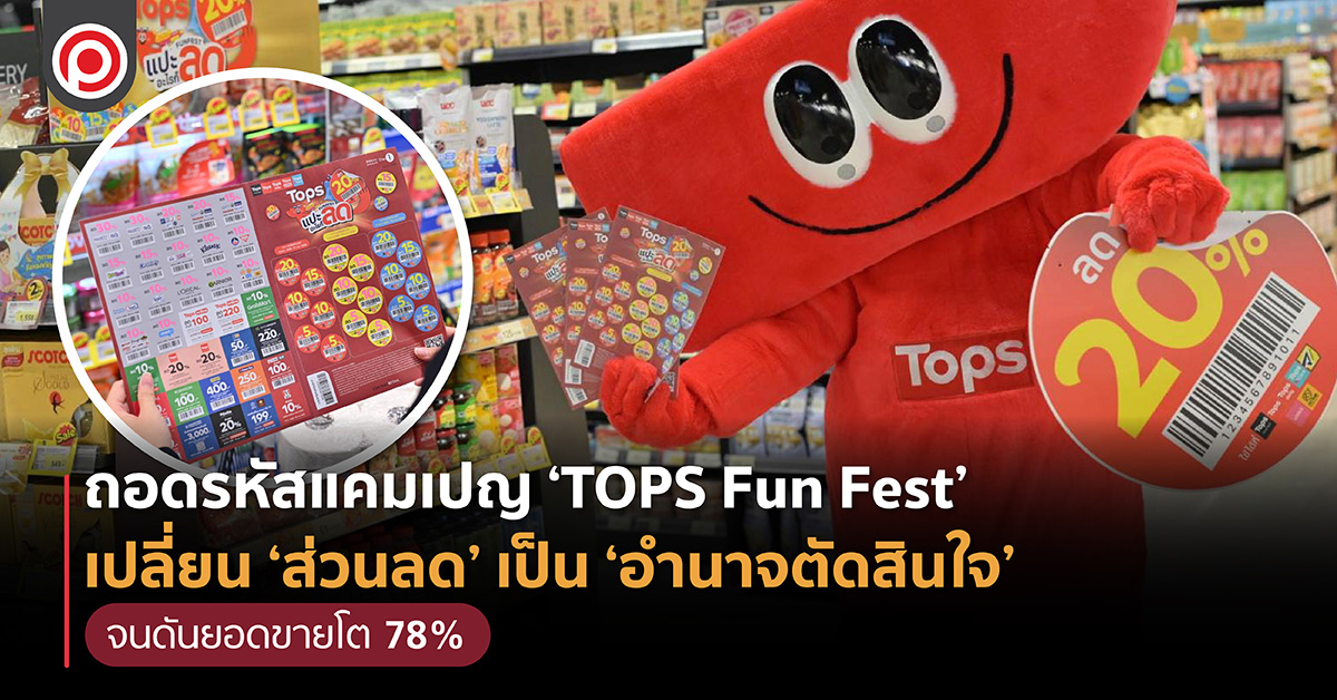 ถ้าพูดถึงสงครามโปรโมชั่นในธุรกิจค้าปลีก ภาพที่นักการตลาดส่วนใหญ่คุ้นเคยคงหนีไม่พ้นการลด แลก แจก แถม หรือสะสมแต้มแลกของรางวัล แต่ท่าเดิม ๆ แบบนั้นใคร ๆ ก็ทำได้ หากโปรโมชั่นนั้นตรงใจลูกค้า ก็ดี แต่เมื่อไม่ตรงใจ ก็เงียบ ซึ่ง TOPS เลือกเดินทางที่ต่างออกไปในแคมเปญ TOPS Fun Fest ที่ให้ลูกค้าเป็นคนตัดสินใจเองว่าจะ ลดอะไร ผลที่ได้เทียบกับค่าเฉลี่ย 12 สัปดาห์ก่อนแคมเปญคือ Basket Size เพิ่มขึ้น 78%, ยอดขายต่อลูกค้าโตขึ้น 22%, ลูกค้าใหม่เพิ่มขึ้น 18% ความถี่เพิ่มขึ้น 5% และ 88% ของผู้ร่วมแคมเปญบอกว่า คุ้มจริง ดังนั้น Positioning จะพาไปเจาะลึกเบื้องหลัง ทำไมการให้ลูกค้า ตัดสินใจ ถึงดีกว่าส่วนลดแบบปกติ
