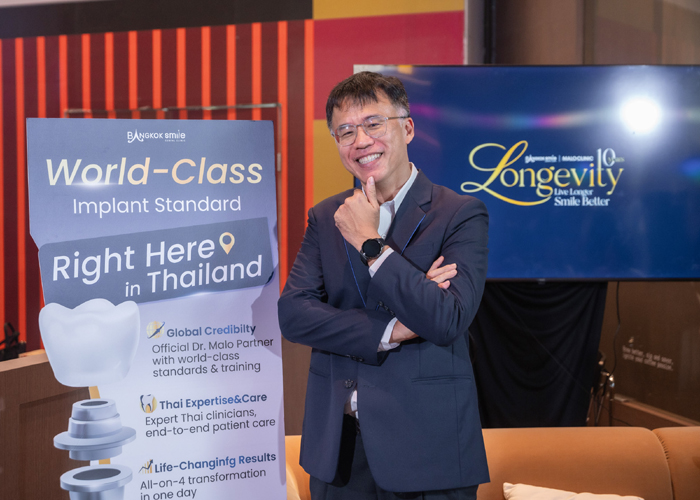 คลินิกทันตกรรมบางกอกสไมล์ (Bangkok Smile Dental Clinic) ประกาศการเป็นศูนย์ทันตกรรมรากฟันเทียมระดับโลก (Global Dental Implant Destination) ด้วยการเปิดตัว Implant Dental Center ชูแนวคิด “Live Longer, Smile Better” ผสานนวัตกรรม All-on-4™ ที่คิดค้นโดย Dr. Paulo Malo เข้ากับเทรนด์สุขภาพ Longevity ในปัจจุบัน เพื่อคุณภาพชีวิตที่ยืนยาวสำหรับกลุ่ม Gen Babyboom and Gen X โดยได้รับเกียรติจากกูรูด้านการชะลอวัยระดับประเทศร่วมให้ข้อมูล