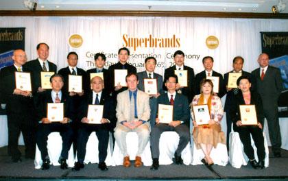 มร.ปีเตอร์ เจฟเฟอร์รี (แถวนั่งที่ 3 จากซ้าย) กรรมการผู้จัดการภาคพื้นเอเชีย Superbrands International และ มร.สตีฟ ลีซ (แถวยืนขวาสุด) ประธานเจ้าหน้าที่บริหาร Superbrands ประเทศไทย มอบเกียรติบัตร สุดยอดแบรนด์ชั้นนำ Superbrands ในประเทศไทยให้กับผู้ประกอบการจากหลากหลายอุตสาหกรรม