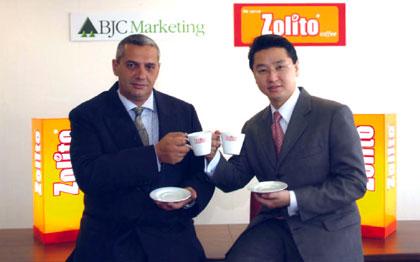 นายอัคคพันธ์ ลีวุฒินันท์ กรรมการผู้จัดการ บริษัท คอฟฟี่ บีนเนอรี่ จำกัด ผู้ผลิตกาแฟคั่วบดระดับพรีเมี่ยม แบรนด์ “โซลิโต้” กาแฟไทยคุณภาพสากล ร่วมลงนามสัญญากับนายฟรานเชสโก้ บลังคัชชิโอ กรรมการผู้จัดการ บริษัท บีเจซี มาร์เก็ตติ้ง จำกัด เพื่อเป็นองค์กรที่ดูแลในด้านการกระจายสินค้าสู่กลุ่มเป้าหมายอย่างทั่วถึง ซึ่งปัจจุบันวางจำหน่ายแล้วที่ ท็อปส์ ซูเปอร์มาร์เก็ต วิลล่า ซูเปอร์มาร์เก็ต โฮมเฟรชมาร์ทเดอะมอลล์ ห้างสรรพสินค้า ดิเอ็มโพเรียม ห้างสรรพสินค้าตั้ง ฮั่ว เส็ง พร้อมทั้งวางแผนจัดกิจกรรมการตลาดอย่างต่อเนื่อง เพื่อให้กลุ่มเป้าหมายได้สัมผัสถึงคุณภาพแห่งรสชาติของกาแฟคั่วบดโซลิโต้