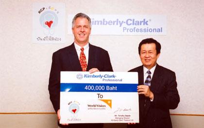 กรุงเทพฯ – เมื่อเร็วๆ นี้ มร.ทิมโมที เบดี้ กรรมการผู้จัดการ บริษัท คิมเบอร์ลี่ย์-คล๊าค ประเทศไทย (ซ้าย) ได้มอบเงินบริจาคเงินจำนวน 400,000 บาท เพื่อสนับสนุนโครงการน้ำสะอาดในโรงเรียน ซึ่งจัดขึ้นโดยแผนกสินค้าเพื่อธุรกิจสถาบัน (Kimberly-Clark Professional) ของบริษัทฯ ให้กับมูลนิธิศุภนิมิตรแห่งประเทศไทย เพื่อจัดหาน้ำดื่มน้ำใช้ที่สะอาดให้กับโรงเรียน โดยเงินบริจาคนี้จะเป็นค่าใช้จ่ายในการจัดหาแทงค์น้ำให้กับโรงเรียนในพื้นที่ขาดแคลนที่เข้าร่วมโครงการจำนวน 23 แห่ง ครอบคลุมทั้ง 4 ภูมิภาคของประเทศไทย โดยมีนายชุศักดิ์ วุฒิวโรภาส ผู้อำนวยการ มูลนิธิศุภนิมิตรแห่งประเทศไทย เป็นผู้รับมอบ