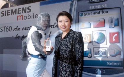 นางสุวรรณี สิงห์ฤาเดช รองประธานฝ่ายโทรศัพท์เคลื่อนที่ซีเมนส์ บริษัท ซีเมนส์ แถลงข่าวเปิดตัววีดีโอโฟนรุ่นล่าสุด “ซีเมนส์ ST60” ครบครันไปด้วยฟังก์ชั่นมัลติมีเดียและหน้าจอสีขนาดใหญ่ พร้อมบริการท่องอินเตอร์เนทอย่างเต็มรูปแบบครั้งแรกจาก Mango ผู้ให้บริการอินเตอร์เนทไร้สายรูปแบบใหม่ ณ Bed Supperclub, สุขุมวิท 11