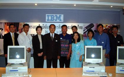 บริษัท ไอบีเอ็ม ประเทศไทย จำกัด ร่วมสร้างสังคมแห่งการเรียนรู้ ด้วยการมอบเครื่องคอมพิวเตอร์ให้กับองค์กร และโรงเรียนในต่างจังหวัด รวมทั้งสิ้น 66 เครื่อง โดยมีโดยมีนายธำรงค์ พงศ์ฐิติเทพ (คนแรกจากทางขวา) รองกรรมการผู้จัดการ ธุรกิจภาครัฐ การเงิน และโทรคมนาคม และนางอรรวรรณ ศิริเดช รองกรรมการผู้จัดการ ฝ่ายการตลาด เป็นตัวแทนส่งมอบให้กับนายเกษม ชัยสิทธิ์ สมาชิกวุฒิสภาจังหวัดเพชรบูรณ์ (ที่ 4 จากซ้าย) ตัวแทนรับมอบให้กับองค์การบริหารส่วนตำบลฝายนาแซง จังหวัดเพชรบูรณ์ พร้อมด้วยโรงเรียนราชประชานุเคราะห์ จ.ลพบุรี โรงเรียนบ้านหนองสาหร่าย จ.นครพนม และโรงเรียนบ้านดอนม่วย จ.สกลนคร