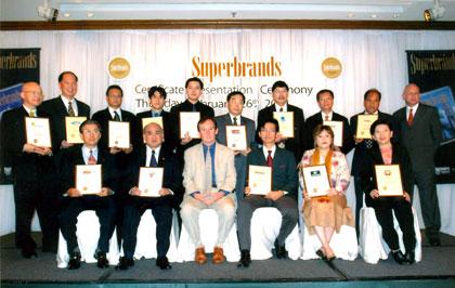 มร.ปีเตอร์ เจฟเฟอร์รี (แถวนั่งที่ 3 จากซ้าย) กรรมการผู้จัดการภาคพื้นเอเชีย Superbrands International และ มร.สตีฟ ลีซ (แถวยืนขวาสุด) ประธานเจ้าหน้าที่บริหาร Superbrands ประเทศไทย มอบเกียรติบัตร สุดยอดแบรนด์ชั้นนำ ‘Superbrands’ ในประเทศไทยให้กับผู้ประกอบการจากหลากหลายอุตสาหกรรม โดยครั้งนี้มีผู้ได้รับเกียรติบัตร 18 แบรนด์ด้วยกัน ได้แก่ แบล็คแคนยอน, บอดี้เชพ, บีทีเอส, แคเรียร์, เชอรีล่อน, เฟดเด็กซ์, ฟิชโช, ฟิวเจอร์ พาร์ครังสิต, น้ำมันพืชหยก, มาลี, มารี ฟรานซ์ บอดี้ไลน์, เอ็มเคเรสโตรองต์, แพน คอสเมติคส์ พลัส, ซีเล็คทูน่า, สลัมเบอร์แลนด์, ไทยแลนด์ เยลโล่ เพจเจส, ทีโอเอ และยูบีซี ณ ห้องอัมรินทร์ 1-3 โรงแรมแกรนด์ ไฮแอท เอราวัณ