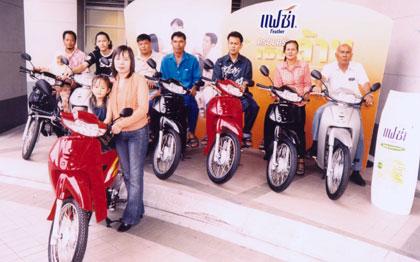 ผลิตภัณฑ์ดูแลเส้นผมแฟซ่า จัดพิธีมอบรางวัลรถมอเตอร์ไซค์ Honda Wave ให้แก่ผู้โชคดี 8 ท่านแรก ที่ส่งฉลากเข้ามาลุ้นครอบครัวเงินล้านกับแฟซ่าครั้งที่ 3 ลุ้นง่ายๆ เพียงส่งฉลากผลิตภัณฑ์แฟซ่าชนิดใดก็ได้ ขนาดใดก็ได้ พร้อมเขียนชื่อ-ที่อยู่ เบอร์โทรศัพท์ มาที่ ตู้ ปณ. 789 ปณจ.บางรัก กทม. 10500 เพื่อลุ้นรับรางวัลมอเตอร์ไซค์อีก 7 ค้นในรายการปลดหนี้