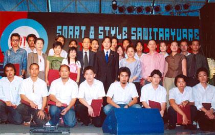 Retro Caf?, ศูนย์การประชุมสิริกิติ์ – นายนิพนธ์ ธีรนาทสิน (ที่ 8 จากซ้าย) กรรมการผู้จัดการ บริษัท สยามซานิทารีแวร์ อินดัสทรี จำกัด ผู้ผลิตและจำหน่ายสุขภัณฑ์คอตโต้และโตโต้ แถลงข่าวผลดำเนินงานและนโยบายของบริษัทในปี 2547 พร้อมมอบประกาศนียบัตรให้กับนิสิตนักศึกษาที่ชนะการประกวดออกแบบสุขภัณฑ์ในโครงการ Smart & Style สุขภัณฑ์คอตโต้จัดขึ้นโดยร่วมกับสถาบันการศึกษา 3 แห่ง คือ จุฬาลงกรณ์มหาวิทยาลัย มหาวิทยาลัยศิลปากร และสถาบันเทคโนโลยีพระจอมเกล้าเจ้าคุณทหารลาดกระบัง