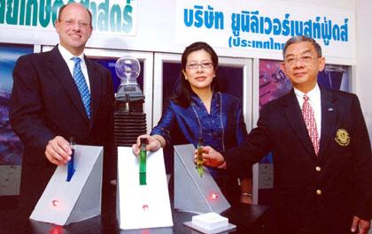 นางสุดารัตน์ เกยุราพันธ์ (กลาง) รัฐมนตรีว่าการกระทรวงสาธารณสุข พร้อมด้วยรองศาสตราจารย์ ดร.วิโรจ อิ่มพิทักษ์ (ขวา) อธิการบดี มหาวิทยาลัยเกษตรศาสตร์ ร่วมเป็นเกียรติในพิธีมอบเงินทุนสนับสนุนห้องปฏิบัติการอาหารและเครื่องดื่ม มหาวิทยาลัยเกษตรศาสตร์ เป็นมูลค่า 20 ล้านบาท จากกลุ่มบริษัท ยูนิลีเวอร์ ไทย โดยมี มร.เลโอ โอสเตอร์เวียร์ (ซ้าย) ประธาน กลุ่มบริษัท ยูนิลีเวอร์ ไทย เป็นตัวแทนมอบทุนสนับสนุนสำหรับการจัดซื้ออุปกรณ์ในห้องปฏิบัติการดังกล่าว ซึ่งเป็นศูนย์กลางในการให้บริการตรวจวิเคราะห์ ผลิตภัณฑ์อาหารและวัตถุดิบทางการเกษตรให้แก่หน่วยงานทั้งภาครัฐและเอกชน อีกทั้งยังเป็นห้องปฏิบัติการที่สำนักงานคณะกรรมการอาหารและยา สำนักงานมาตรฐานผลิตภัณฑ์อุตสาหกรรม และกรมสรรพสามิต ได้ให้การรับรองในด้านมาตรฐาน