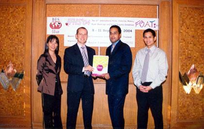 มร.สัญโชค มอดกิล นายกสมาคมอาหารและเครื่องดื่มแห่งประเทศไทย (ที่ 2 จากขวา) เซ็นสัญญาตอบรับ มร.เดวิท เอทคิน ผู้จัดการทั่วไป บริษัท แบงค็อค เอ็กซ์ซิบิชั่น เซอร์วิสเซส จำกัด (บีอีเอส) (ที่ 2 จากซ้าย) เข้าร่วมและสนับสนุนงาน “ดิ อินเตอร์เนชั่นแนลฟู้ด แอนด์ ฮอลพิทอลลิตี้ โชว์ 2004” โดยมี คุณวราดุลย์ มิตรเกษม ฝ่ายบริหารการตลาด และคุณพวงทอง เจริญไพโรจน์วงศ์ ผู้จัดการโครงการ (IFHS 200) ร่วมเป็นสักขีพยานงาน “IFHS 2004” ซึ่งจะถูกจัดขึ้นในระหว่างวันที่ 8-11 กันยายนนี้ ณ ศูนย์ประชุมแห่งชาติสิริกิติ์ กรุงเทพฯ