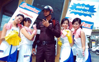 สปอนเท็กซ์ อุปกรณ์ทำความสะอาดชั้นนำจากยุโรป เป็นตัวผลิตภัณฑ์อย่างเป็นทางการในประเทศไทย ด้วยการอาสาเข้าไปทำความสะอาดป้อมจราจร บริเวณสี่แยกนราธิวาสราชนครินทร์ ซึ่งเป็นสี่แยกที่มีการจราจรคับคั่งแห่งหนึ่งของกรุงเทพมหานคร สปอนเท็กซ์ สร้างสีสันและความสนุกสนานให้กับการทำความสะอาดด้วยนวัตกรรมการออกแบบผลิตภัณฑ์ที่เข้าใจถึงการใช้งานของผู้บริโภคอย่างแท้จริง