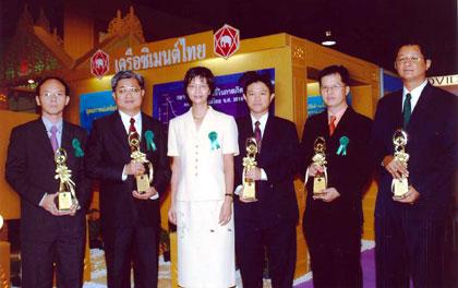 นายสมเกียรติ พันธุ์อนูกูล (ที่ 2 จากซ้าย) กรรมการผู้จัดการ บริษัทปูนซิเมนต์ไทย (ท่าหลวง) จำกัด ในธุรกิจซิเมนต์ พร้อมด้วยผู้บริหารจากธุรกิจปิโตรเคมี และธุรกิจกระดาษและบรรจุภัณฑ์ เครือซิเมนต์ไทยรับรางวัลสถานประกอบการดีเด่นด้านความปลอดภัย อาชีวอนามัย และสภาพแวดล้อมในการทำงานระดับประเทศ ประจำปี 2547 ในฐานะที่บริษัทฯ ให้ความสำคัญอย่างจริงจังต่อการส่งเสริมและพัฒนาความปลอดภัยในการทำงานให้ผู้ปฏิบัติงานในองค์กร และป้องกันผลกระทบที่อาจเกิดขึ้นกับชุมชน ในงานสัปดาห์ความปลอดภัยในการทำงานแห่งชาติ ครั้งที่ 18 ที่อิมแพค เมืองทองธานี