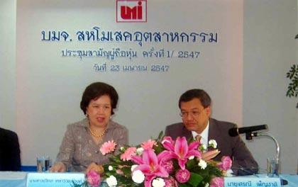 รอ.เศรณี เพ็ญชาติ (ขวา) กรรมการบริหารและประธานที่ประชุม และปวีณา เหล่าวิวัฒน์วงศ์ (ซ้าย) กรรมการผู้จัดการ บมจ.สหโมเสคอตุสาหกรรม หรือ ยูเอ็มไอ ผู้ผลิตและจำหน่ายกระเบื้องเซรามิก “ดูราเกรส” “ลีลา” และกระเบื้องโมเสค “ยูเอ็มไอ” จัดการประชุมสามัญผู้ถือหุ้นครั้งที่ 1 ประจำปี 2547 ณ ห้องประชุมชั้น 27 อาคารชำนาญ เพ็ญชาติ บิซเนส เซ็นเตอร์ เมื่อเร็วๆ นี้