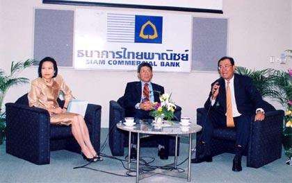 ธนาคารไทยพาณิชย์เปิดตัวกลุ่มลูกค้าธุรกิจ (Corporate Banking) ก้าวสู่การเป็นผู้นำในการให้บริการทางการเงินครบวงจรกับลูกค้าธุรกิจ ตามนโยบาย Universal Banking เป็นแห่งแรกของธนาคารพาณิชย์ โดยมี ดร.วิชิต สุรพงษ์ชัย (กลาง) ประธานกรรมการบริหาร คุณหญิงชฎา วัฒนศิริธรรม (ซ้าย) กรรมการผู้จัดการใหญ่ และนายศิริชัย สมบัติศิริ (ขวา) รองผู้จัดการใหญ่ กลุ่มลูกค้าธุรกิจ ร่วมแถลงข่าวความพร้อมของธนาคารไทยพาณิชย์ในการรองรับความต้องการหลากรูปแบบของลูกค้าด้วยการให้บริการครบวงจร