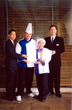 มร.เจมส์ วิลสัน ผู้จัดการทั่วไป โรงแรมปทุมวัน ปริ๊นเซส แสดงความยินดีกับ ม.ล.ชัญญา ชมพูนุท แม่ครัวอาหารไทยประจำโรงแรมฯ เนื่องในโอกาสที่ได้รับรางวัลชนะเลิศเหรียญทอง งานแข่งขันทำอาหาร สุดยอดผัดไท และเหรียญเงิน ต้มยำกุ้ง ซึ่งมีผู้เข้าร่วมการแข่งขันกว่า 30 แห่งในงาน “Thailand Kitchen of the World Culinary Classic … Battle of Chefs” ซึ่งจัดโดย หอการค้าประเทศไทย ร่วมกับกรมส่งเสริมการส่งออก กระทรวงพาณิชย์