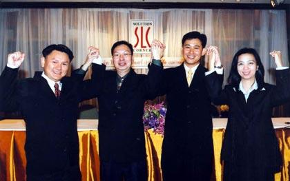 นายนิทัศน์ มณีศิลาสันต์ ประธานกรรมการบริหารและ กรรมการผู้จัดการ บริษัท โซลูชั่น คอนเนอร์ (1998) จำกัด (มหาชน) (ที่ 2 จากขวา) นำทีมคณะผู้บริหารของบริษัทฯ แถลงข่าวรายละเอียดการเข้าจดทะเบียนในตลาดหลักทรัพย์ใหม่ และการเสนอขายหุ้นสามัญให้กับประชาชนทั่วไปจำนวน 10 ล้านหุ้น โดยมีมูลค่าที่ตราไว้หุ้นละ 1 บาท
