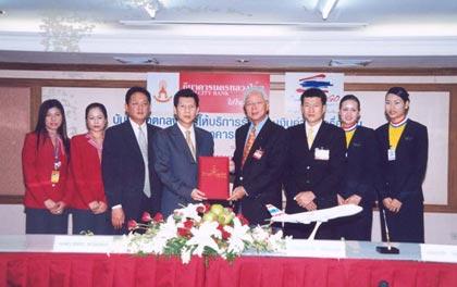 นายระเฑียร ศรีมงคล ผู้ช่วยกรรมการผู้จัดการใหญ่ ธนาคารนครหลวงไทย จำกัด (มหาชน) (ซ้าย) ร้อยเอกขจิต หัพนานนท์ ประธานบริษัท โอเรียนท์ไทย แอร์ไลน์ จำกัด ร่วมลงนามบันทึกข้อตกลง “การให้บริการรับชำระเงินค่าตั๋วเครื่องบินผ่านเคาน์เตอร์ธนาคาร” เพื่ออำนวยความสะดวกและเพิ่มช่องทางในการชำระเงินค่าตั๋วเครื่องบินให้แก่ลูกค้าสายการบินโอเรียนท์ไทย แอร์ไลน์ ผ่านบริการ SCIB BILL PAYMENT ณ ห้องประชุมชั้น 10 ธนาคารนครหลวงไทย สำนักงานใหญ่ เมื่อเร็วๆ นี้