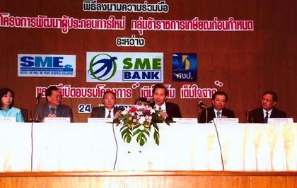นายพินิจ จารุสมบัติ รัฐมนตรีว่าการกระทรวงอุตสาหกรรม ร่วมกับ ดร.ไพโรจน์ สุขสัมฤทธิ์ เลขาธิการสำนักงานประกันสังคม ผู้แทน รัฐมนตรีว่าการกระทรวงแรงงาน ให้เกียรติร่วมลงนามเป็นประธานในพิธีลงนามความร่วมมือ “โครงการพัฒนาผู้ประกอบการใหม่ กลุ่มข้าราชการเกษียณอายุก่อนกำหนด” ระหว่างธนาคารพัฒนาวิสาหกิจขนาดกลางและขนาดย่อมแห่งประเทศไทย (ธพว.) สถาบันพัฒนาวิสาหกิจขนาดกลางและขนาดย่อม และศูนย์ให้คำปรึกษาทางการเงินสำหรับวิสาหกิจขนาดกลางและขนาดย่อม (ศงป.) พร้อมเป็นประธานพิธีเปิดอบรมโครงการ “เติมให้เต็ม เต็มใจจาก” ณ ห้องอเนกประสงค์ ชั้น 2 สถาบันพัฒนาวิสาหกิจขนาดกลางและขนาดย่อม มหาวิทยาลัยธรรมศาสตร์ ศูนย์รังสิต เมื่อเร็วๆ นี้