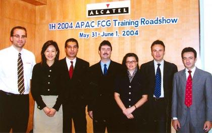 มร.ฟิลิปป์ เชตู (ที่ 3 จากซ้าย) กรรมการผู้จัดการ บริษัท อัคคาเทล (ประเทศไทย) จำกัด เป็นประธานต้อนรับวิทยากรผู้เชี่ยวชาญจากอัคคาเทลทั่วโลก ในการบรรยายเรื่อง “2004 APAC FCG Training Roadshow” ให้แก่กลุ่มทีมวิศวกร Fixed Communications Group (FCG) จากประเทศไทย เวียดนาม และฟิลิปปินส์ ซึ่งเป็นหนึ่งในคอร์สอบรมประจำปี ที่จัดขึ้นเพื่อถ่ายทอดเทคโนโลยีและประสบการณ์ทางด้านเทคโนโลยีสื่อสารใหม่ๆ เมื่อเร็วๆ นี้