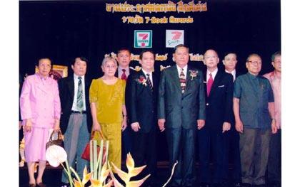 ก่อศักดิ์ ไชยรัศมีศักดิ์ (กลาง) ประธานเจ้าหน้าที่บริหาร บริษัท ซี. พี. เซเว่นอีเลฟเว่น จำกัด (มหาชน) ประภัสสร เสวิกุล (ที่ 2 จากขวา) นายกสมาคมนักเขียนแห่ง ประเทศไทย พร้อมด้วยคณะกรรมการกิตติมศักดิ์ โครงการประกวดหนังสือดีเด่น เซเว่น บุ๊ค อวอร์ดส ให้การต้อนรับ อำพล เสนาณรงค์ (ที่ 3 จากขวา) องคมนตรี ในโอกาสให้เกียรติเป็นประธานในการประกาศผลรางวัลหนังสือดีเด่น เซเว่น บุ๊ค อวอร์ดส ซึ่งมีหนังสือคุณภาพทั้งหมด 75 เล่ม จาก 7 ประเภท ได้รับรางวัลดังกล่าว ณ โรงละครโจหลุยส์ เธียร์เตอร์ สวนลุมไนท์บาร์ซาร์ เมื่อเร็วๆ นี้
