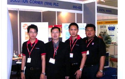 นายธีรยุทธ วิธานธรรม ผู้จัดการฝายการตลาดต่างประเทศ บริษัท โซลูชั่น คอนเนอร์ (1998) จำกัด (มหาชน) (ที่ 2 จากซ้าย) พร้อมคณะเจ้าหน้าที่นำโปรแกรม EasyQuick นวัตกรรมใหม่เครื่องมือในการเขียนโปรแกรมที่บริษัทเป็นผู้คิดค้นขึ้นไปแสดงที่งาน IT Enterprise ที่ประเทศสิงคโปร์ เมื่อเร็วๆ นี้