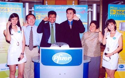 มร.อมาล นาจ (ที่ 3 จากซ้าย) ผู้จัดการใหญ่ ประเทศไทยและอินโดจีน บริษัท ไฟเซอร์ (ประเทศไทย) จำกัด ร่วมด้วย พญ.อรนุช อรุณทัต (ที่ 5 จากซ้าย) ผู้อำนวยการฝ่ายการแพทย์ รศ.นพ.สมบุญ เหลืองวัฒนากิจ (ที่ 4 จากซ้าย) ศัลยแพทย์ระบบปัสสาวะ โรงพยาบาลรามาธิบดี และ พ.ต.อ.นพ.ธนา ธุระเจน ศัลยแพทย์โรคกระดูกและข้อ (ที่ 2 จากซ้าย) แถลงข่าวแนะนำ “สายสุขภาพไฟเซอร์ 02-664-5888” มิติใหม่ของบริการข้อมูลและปรึกษาปัญหาสุขภาพทางโทรศัพท์ฮอตไลน์ ระดมแพทย์ผู้เชี่ยวชาญทุกสาขาให้คำปรึกษาทุกปัญหาสุขภาพ และเปิดให้ประชาชนสอบถามปัญหาได้ทุกโรคในเบอร์เดียว เน้นให้ประชาชนรู้จักวิธีปฏิบัติตนเพื่อป้องกันและลดปัจจัยเสี่ยงทำให้เกิดโรค เพื่อพัฒนาสุขภาพของคนไทยให้ดีขึ้น ที่โรงแรมแกรนด์ ไฮแอทเอราวัณ เมื่อเร็วๆ นี้
