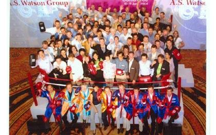 กรุงเทพ – 30 มิถุนายน 2547 – ผู้บริหารระดับสูงกลุ่มเอ. เอส. วัตสันทั่วโลก เดินทางมาประเทศไทย เข้าร่วมประชุมใหญ่ นำโดย มร.เอียน เวด กรรมการผู้จัดการ กลุ่มบริษัท เอ. เอส. วัตสัน และผู้บริหารประจำภูมิภาคต่างๆ ในชุดนักมวยพร้อมผู้บริหารอื่นๆ กว่า 80 คนทั่วโลก ขึ้นสังเวียนความพร้อมและมุ่งมั่นในการผลักดันแบรนด์วัตสันให้เป็นที่จดจำทั่วโลก ภายในงาน มร.โจนาธาน ดิมเบิลบี้ นักจัดรายการวิทยุและโทรทัศน์ชื่อดังของอังกฤษบินตรงมารับหน้าที่ดำเนินการประชุม พร้อมวิทยากรรับเชิญพิเศษ มร.สก็อต เบดเบอรี่ นักวางแผนกลยุทธ์การตลาดของหลายแบรนด์ดังระดับโลก ร่วมแสดงทรรศนะและแนะเทคนิคเรื่อง “การสร้างแบรนด์เพื่อความสำเร็จ”