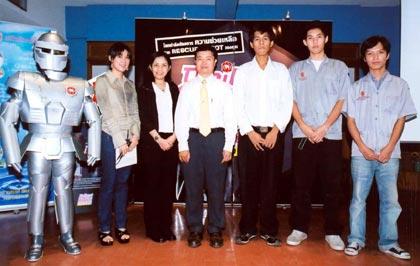สุวิมล จิวาลักษณ์ (ที่ 3 จากซ้าย) ผู้จัดการกิจกรรมเพื่อสังคม สำนักงานประชาสัมพันธ์ บริษัท ปูนซีเมนต์ไทย จำกัด (มหาชน) ดร.ทวีเดช ศิริธนาพิพัฒน์ (กลาง) ผู้อำนวยการสถาบันค้นคว้าและพัฒนาเทคโนโลยีการผลิตทางอุตสาหกรรม และนิหน่า สฐิตา เรืองรองหิรัญญา (ที่ 2 จากซ้าย) ร่วมงาน “Thailand Rescue Robot Championship 2004” ซึ่งเป็นกิจกรรมประชาสัมพันธ์ และเชิญชวนนักศึกษาสถาบันต่างๆ ทั่วประเทศเข้าร่วมประกวดประดิษฐ์หุ่นยนต์กู้ภัย ในโครงการ “Thailand Rescue Robot Championship 2004” จัดโดยเครือซีเมนต์ไทย สมาคมวิชาหุ่นยนต์ไทย และสถาบันค้นคว้าและพัฒนาเทคโนโลยีการผลิตทางอุตสาหกรรม