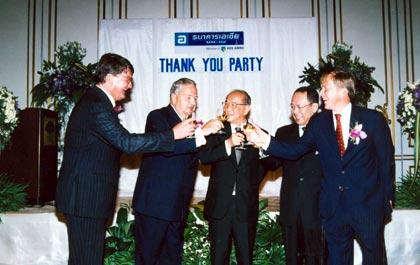 มร.ดอฟ โคลี กรรมการบริหาร ธนาคารเอบีเอ็น แอมโร ประเทศเนเธอร์แลนด์ ให้เกียรติเป็นประธานงานเลี้ยงแด่คณะผู้บริหาร และพนักงานธนาคารเอเชีย จำกัด (มหาชน) ภายใต้การนำของนายชวลิต ธนะชานันท์ ประธานกรรมการและนายจุลกร สิงหโกวินท์ กรรมการผู้จัดการใหญ่ เพื่อแสดงความขอบคุณในความร่วมมือร่วมใจที่ได้มีให้กับธนาคารเอบีเอ็น แอมโร ตลอดระยะเวลา 6 ปีที่ได้เข้าถือหุ้นในธนาคารเอเชีย ทั้งนี้ด้วยผลงานที่เกิดขึ้นแสดงให้เห็นถึงความมุ่งมั่นและอุทิศตนของพนักงานธนาคารเอเชียทุกระดับในการนำพาธนาคารเอเชียก้าวขึ้นสู่ธนาคารชั้นนำของประเทศไทย จนเป็นที่ยอมรับ และประจักษ์ของลูกค้าทุกกลุ่ม