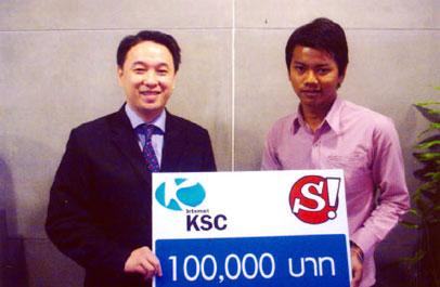บริษัท เค เอส ซี คอมเมอร์เชียล อินเตอร์เนต จำกัด โดยนายประพนธ์ พงษ์ประพัฒน์ (ซ้าย) ผู้ช่วย ผู้อำนวยการฝ่าย Consumer Dial-up Development มอบรางวัลบัญชีเงินฝากมูลค่า 100,000 บาท แก่นายสมสันต์ ใจซื่อ (ขวา) ลูกค้าผู้โชคดีคนแรกจากแคมเปญ Lucky Magic & Lucky Draw ที่จับรางวัลครั้งแรกประจำเดือนเมษายน-มิถุนายน 2547 พร้อมมอบรางวัลบัญชีเงินฝาก 1 แสนบาทแก่ร้านเซเว่น-อีเลเว่น สาขาพระราม 2 ซึ่งจำหน่ายอินเทอร์เน็ตแพ็คเกจให้กับนายสมสันต์อีกด้วย