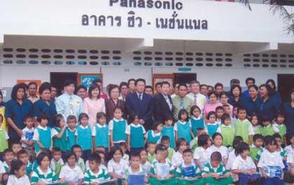 เนื่องในโอกาสที่ บริษัท พานาโซนิค ซิว เซลส์ (ประเทศไทย) จำกัด ได้สร้างและส่งมอบอาคารเรียนครบ 75 แห่งทั่วประเทศ จึงจัดทำอุปกรณ์เครื่องเขียนเพื่อมอบให้กับโรงเรียนทั้งหมด โดย มร. ไดโซะ อิโตะ กรรมการผู้จัดการ บริษัท พานาโซนิค ซิว เซลส์ (ประเทศไทย) จำกัด มอบอุปกรณ์เครื่องเขียนให้กับนักเรียนโรงเรียนบ้านดอนเกลี้ยง จ.สุราษฎร์ธานี และโรงเรียนบ้านเขาฝ้าย จ.นครศรีธรรมราช เมื่อวันที่ 15-16 ธันวาคม 2547