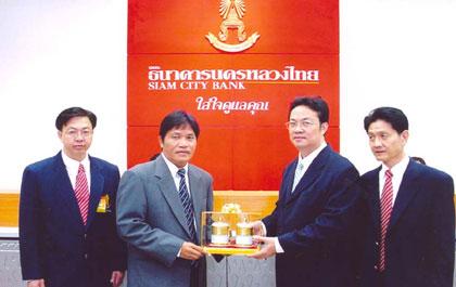 นายเชิด สรรพนา ผู้ช่วยกรรมการผู้จัดการใหญ่ ธนาคารนครหลวงไทย จำกัด (มหาชน) (ขวามือ) มอบของที่ระลึกให้แก่นายเสนีย์ จิตตเกษม รองผู้ว่าราชการจังหวัดสุรินทร์ ในโอกาสให้เกียรติมาเป็นประธานในพิธีเปิดธนาคารนครหลวงไทย สาขาสุรินทร์ ณ อาคารเลขที่ 233 ถ.ธนสาร ต.ในเมือง อ.เมือง จ.สุรินทร์ โดยมีนายวัชระ สงวนวงษ์ ผู้จัดการสาขาสุรินทร์ ร่วมให้การต้อนรับ เมื่อเร็วๆ นี้