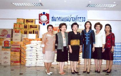 พ.ญ.วันทนีย์ วัฒนะ นายกสมาคมแม่บ้านตำรวจ และแม่บ้านตำรวจในพื้นที่ส่งกำลังขวัญเจ้าหน้าที่ที่ปฏิบัติภารกิจในพื้นที่ภาคใต้ พร้อมสนับสนุนเงิน เครื่องอุปโภค-บริโภค ยาและเวชภัณฑ์ รวมมูลค่า 5 แสนบาท และเปิดให้ท่านที่มีความประสงค์จะบริจาคเงินช่วยเหลือผู้ประสบภัยคลื่นยักษ์ ผ่านบัญชีออมทรัพย์ ธ.ทหารไทย สาขาราชประสงค์ ชื่อบัญชี สมาคมแม่บ้านตำรวจ (ช่วยเหลือผู้ประสบภัย) เลขที่บัญชี 011-2-66606-0 หรือส่งของร่วมบริจาคได้ที่สถานีตำรวจทุกแห่งทั่วประเทศ และที่สมาคมแม่บ้านตำรวจ ทุกวันเวลาทำการ