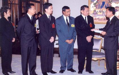 นายสมชาย บุลสุข (ที่ 2 จากขวา) ประธานคณะกรรมการบริหาร บริษัท เสริมสุข จำกัด (มหาชน) และ Mr.Hari Avula (มร.ฮารี่ อะวูลา) (ที่ 3 จากขวา) Vice President Business Development & Strategy บริษัท เป๊ปซี่โค อินเตอร์เนชั่นแนล มอบเงินบริจาคจำนวน 6 ล้านบาท ให้แก่ พ.ต.ท. ดร.ทักษิณ ชินวัตร นายกรัฐมนตรี ที่ทำเนียบรัฐบาล เพื่อสบทบ “กองทุนช่วยเหลือผู้ประสบสาธารณภัย สำนักนายกรัฐมนตรี” ในการรวมพลังส่งกำลังใจและความห่วงใยไปยังผู้ประสบเหตุ ที่ได้รับความทุกข์ความเสียหายจากภัยพิบัติที่เกิดขึ้นใน 6 จังหวัดภาคใต้