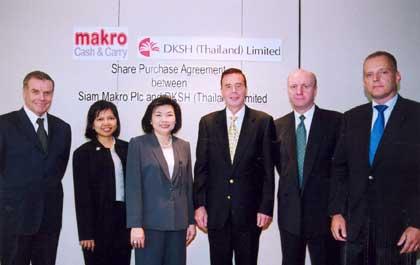 สุชาดา อิทธิจารุกุล (ที่ 3 จากซ้าย) กรรมการผู้จัดการ บริษัท สยามแม็คโคร จำกัด (มหาชน) ผู้ดำเนินธุรกิจศูนย์จำหน่ายสินค้าระบบสมาชิกในราคาขายส่ง “แม็คโคร” และวัฒน์ เบรนไนส (ที่ 3 จากขวา) ประธานบริษัท ดีเคเอสเอช (ประเทศไทย) จำกัด ร่วมลงนามในสัญญาเพื่อซื้อกิจการของบริษัท สยามฟูดเซอร์วิส จำกัด ผู้นำด้านบริการจัดหาสินค้าอาหารคุณภาพและบริการโลจิสติกส์สำหรับภาคธุรกิจอาหารในไทย จากบริษัท ดีทแฮล์ม จำกัด ในเครือดีเคเอชเอส โดยมี ปีเตอร์ นูบอร์ (ขวา) กรรมการผู้จัดการ บริษัท สยามฟูดเซอร์วิส จำกัด ร่วมเป็นสักขีพยาน เมื่อเร็วๆ นี้