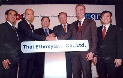 บริษัท ไทยโอเลฟินส์ จำกัด (มหาชน) หรือ ทีโอซี และบริษัท ค็อกนิสไทย จำกัด ลงนามในสัญญาจัดตั้งบริษัทร่วมทุน ไทยอีทอกซีเลท จำกัด เพื่อผลิตสารแฟตตี้แอลกฮอล์อีทอกซีเลท (Fatty Alcohol Ethoxylates) เพื่อป้อนอุตสาหกรรมผลิตภัณฑ์อุปโภคด้านสุขภาพและผลิตภัณฑ์ทำความสะอาดในประเทศไทยด้วยเงินลงทุนประมาณ 20 ล้านเหรียญสหรัฐ โดยมีผู้บริหารและแขกผู้มีเกียรติร่วมงานหลายท่านร่วมเป็นสักขีพยาน