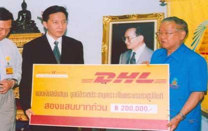 กรุงเทพฯ – 12 ธันวาคม 2548 – ผู้บริหารและพนักงาน บริษัทท ดีเอชแอล เอ็กซ์เพรส (ประเทศไทย) จำกัด ผู้ให้บริการขนส่งและลอจิสติกส์อย่างครบวงจร ร่วมมอบเงินจำนวน 200,000 บาท ให้กับมูลนิธิราชประชานุเคราะห์ ในพระบรมราชูปถัมภ์ เพื่อนำไปช่วยเหลือผู้ประสบภัยคลื่นยักษ์สึนามิที่พัดถล่มชายฝั่งทะเลอันดามัน ซึ่งสร้างความเสียหายอย่างมากมายในหลายจังหวัดภาคใต้ของ ประเทศไทย โดยก่อนหน้า ดีเอชแอลได้ขนส่งสิ่งของบริจาคให้กับผู้ประสบภัยเมื่อปลายเดือนที่