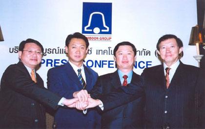 นายวีระยุทธ กิตะพาณิชย์ (ที่ 3 จากซ้าย) กรรมการอำนวยการ บริษัท สมบูรณ์ แอ๊ดวานซ์ เทคโนโลยี จำกัด (มหาชน) ผู้ผลิตชิ้นส่วนยานยนต์ โดยมีผลิตภัณฑ์หลัก ได้แก่ เพลาข้าง และแหนบแผ่น แถลงข่าวในโอกาสที่บริษัทจะเข้าซื้อขายในตลาดหลักทรัพย์แห่งประเทศไทย โดยมีนายภควัต โกวิทวัฒนพงศ์ (ขวาสุด) ประธานกรรมการเจ้าหน้าที่บริหาร กลุ่มบริษัทหลักทรัพย์ ทรีนีตี้ เป็นที่ปรึกษาด้านการเงิน เมื่อเร็วๆ นี้