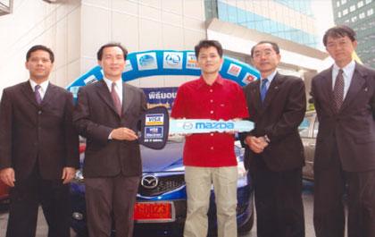 กรุงเทพฯ – 27 มกราคม 2548 – วีซ่า อินเตอร์เนชั่นแนล แบรนด์ชำระเงินชั้นนำในไทยและทั่วโลก มอบรางวัลรถยนต์มาสด้า โปรทีเจ จำนวน 5 คัน และรถยนต์มาสด้า 3 จำนวน 1 คัน มูลค่ากว่า 4 ล้านบาท แก่ผู้ถือบัตรวีซ่าและวีซ่า อินเตอร์เนชั่นแนลที่โชคดีจากโครงการส่งเสริมการขาย “Bangkok Countdown 2005” ซึ่งจัดขึ้นเพื่อสนับสนุนการใช้บัตรชำระเงินประเภทต่างๆ แทนการใช้เงินสด