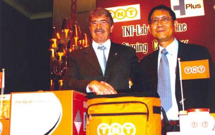 มร. วินเฟรด คิสบี้ (ซ้าย) กรรมการผู้จัดการ ทีเอ็นที (ประเทศไทย) เซ็นสัญญากับศาสตราจารย์เกียรติคุณ นายแพทย์เทพ หิมะทองคำ ประธานกรรมการ และผู้ก่อตั้งบริษัท แลปพลัส วัน ในการบริหารการขนส่งเลือดและตัวอย่างเพื่อการตรวจสอบทางการแพทย์ทั้งระบบให้แก่ แลปพลัส วัน ทั้งนี้ สัญญาฉบับดังกล่าวส่งผลให้ทีเอ็นทีสามารถเจาะเข้าสู่ตลาดขนส่งด่วนเพื่อการแพทย์ภายในประเทศ พร้อมทั้งยกระดับคุณภาพผลการทดสอบของ แลปพลัส วัน จากการรับประกันระยะเวลาในการขนส่ง และการใช้บรรจุภัณฑ์พิเศษของทีเอ็นที