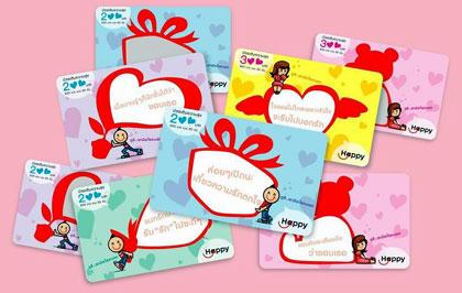 2 กุมภาพันธ์ 2548 – แฮปปี้ โทรศัพท์แบบเติมเงินจากดีแทค เปิดตัวบัตรเติมเงินแฮปปี้ที่ผลิตขึ้นเพื่อต้อนรับเดือนแห่งความรัก และยังสามารถใช้สื่อความหมายดี ๆ ได้ในทุกโอกาสพิเศษ พิมพ์ด้วยระบบเทอร์โมโครมิค (Thermochromic) มูลค่า 200 และ 300 บาท มีทั้งหมด 5 แบบ สอดแทรกไอเดียเก๋ไก๋โดยซ่อนข้อความบอกรักไว้บนบัตรเติมเงิน อาศัยความร้อนจากการสัมผัสผ่านปลายนิ้วโดยการถูเบา ๆ บนแถบด้านหน้าของบัตร ข้อความบอกรักจะปรากฏขึ้นมาสร้างรอยยิ้มและความประทับใจแก่ทั้งผู้ให้และผู้รับ ผลิตจำนวนจำกัด วางจำหน่ายทั่วประเทศแล้ววันนี้